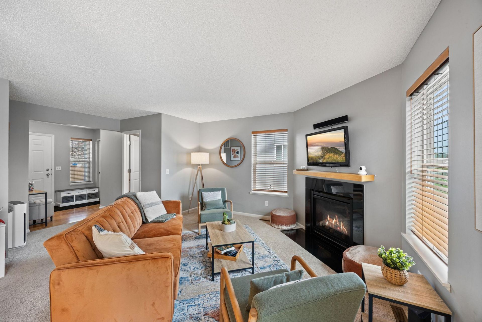 Set in a quiet, peaceful Blaine neighborhood, this 4-bedroom, 4-bath home offers an impressive blend of space, updates, and inviting indoor-outdoor living, just minutes from parks, Sunrise Elementary, Sunrise Lake, and Lakeside Commons Park?featuring a beach, playground, splash pad, and a variety of recreational amenities.Inside, the main level features an open, comfortable layout filled with natural light, highlighted by a welcoming living room with a Heat-n-Glo fireplace and scenic backyard views.The kitchen combines style and function with hardwood floors, granite countertops, sleek appliances, and abundant cabinetry, flowing seamlessly into the dining area with updated statement lighting (2026) and direct patio access.Upstairs, three spacious bedrooms include a private primary suite with a walk-in closet and bath, while a versatile loft and upper-level laundry with a GE smart washer (2023) add everyday convenience.The finished lower level (2022) expands the living space with a large family room, fourth bedroom, and nearby 3/4 bath.Outside, enjoy a covered front porch and private patio framed by mature trees. A two-car garage and new furnace (2025) add peace of mind.